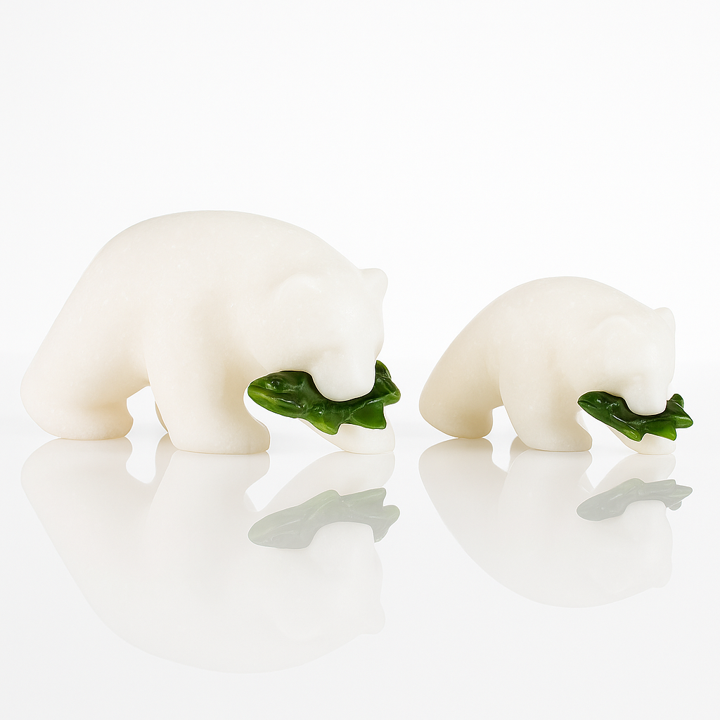 These hand carved works of art are designed utilizing the finest quality star marble stone. The bear's serve as one of our great wildlife in Canada that brings you an organic mineral sculpture.